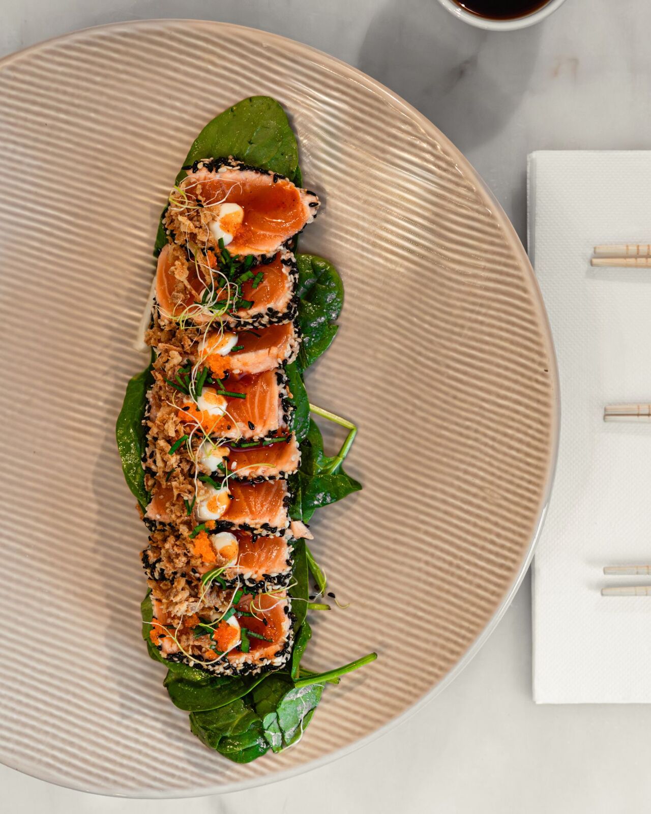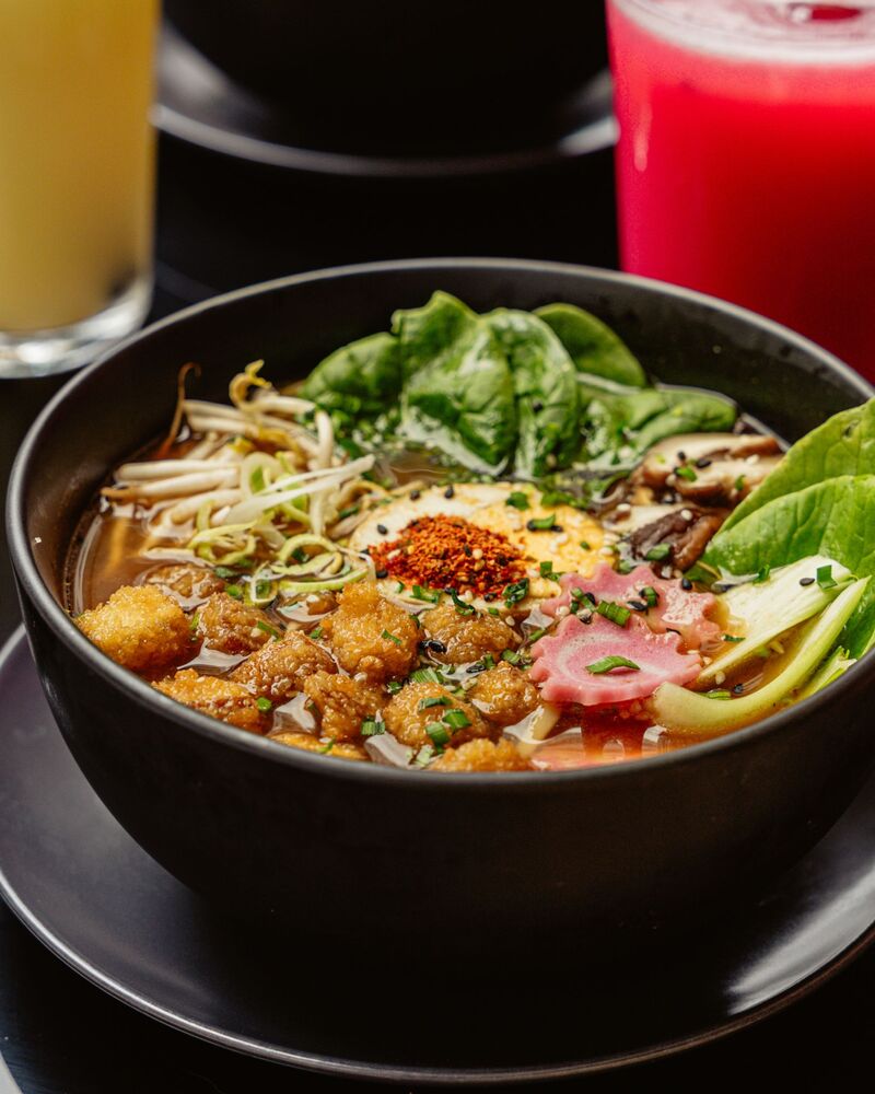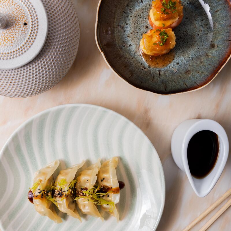 Arroz salteado no wok com ovo e o nosso molho especial à base de soja, sésamo, cebolinho e togarashi. Disponível com frango, salmão, camarão ou tofu.